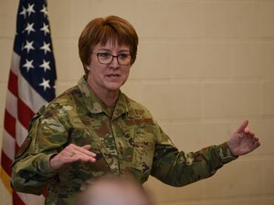 U.S. Air Force Vice Chief of Staff Gen. David Allvin visited Grand Forks Air Force Base, North Dakota, Oct. 10, 2023. Allvin delivered a keynote address at the 17th annual Unmanned Aerial Systems (UAS) Summit and Expo, a yearly event drawing in UAS experts from around the world, in Grand Forks,